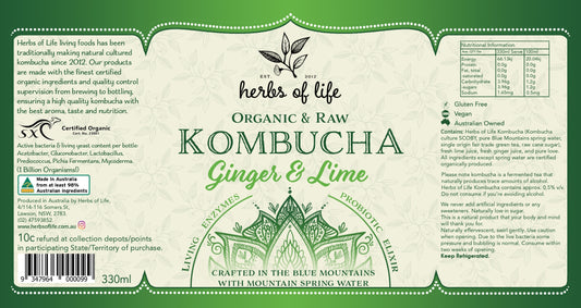 Herbs of Life Organic & Raw Kombucha - Ginger & Lime