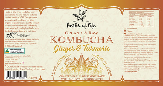 Herbs of Life Organic & Raw Kombucha - Ginger & Turmeric