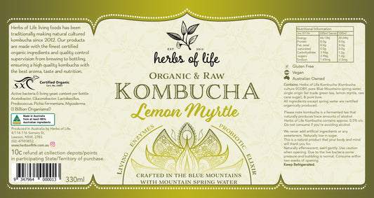 Herbs of Life Organic & Raw Kombucha - Lemon Myrtle