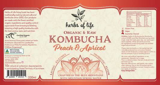 Herbs of Life Organic & Raw Kombucha - Peach & Apricot