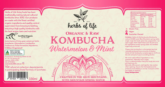 Herbs of Life Organic & Raw Kombucha - Watermelon Mint